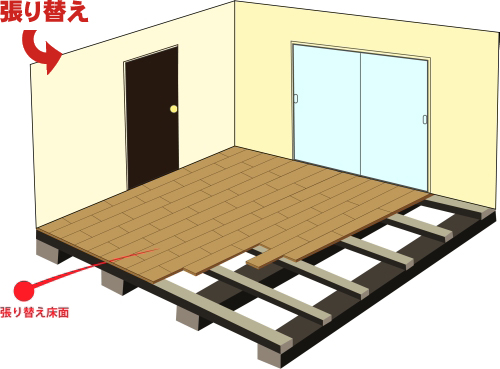 張り替えとは古い既存フローリングをはがし、新しいフローリングに交換する事です。