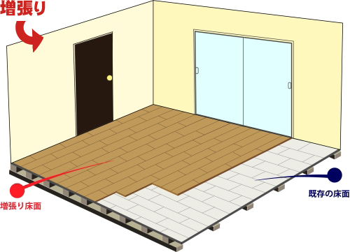 増張りとは古い既存フローリングの上にフローリング材を重ねて張る工事です。