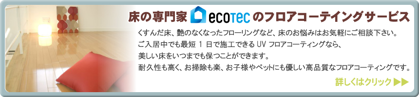 ![]() 施工後のメンテナンスに効果的なフロアコーティングなど、床に最適なご提案で、お客様の快適生活をサポートします。 |